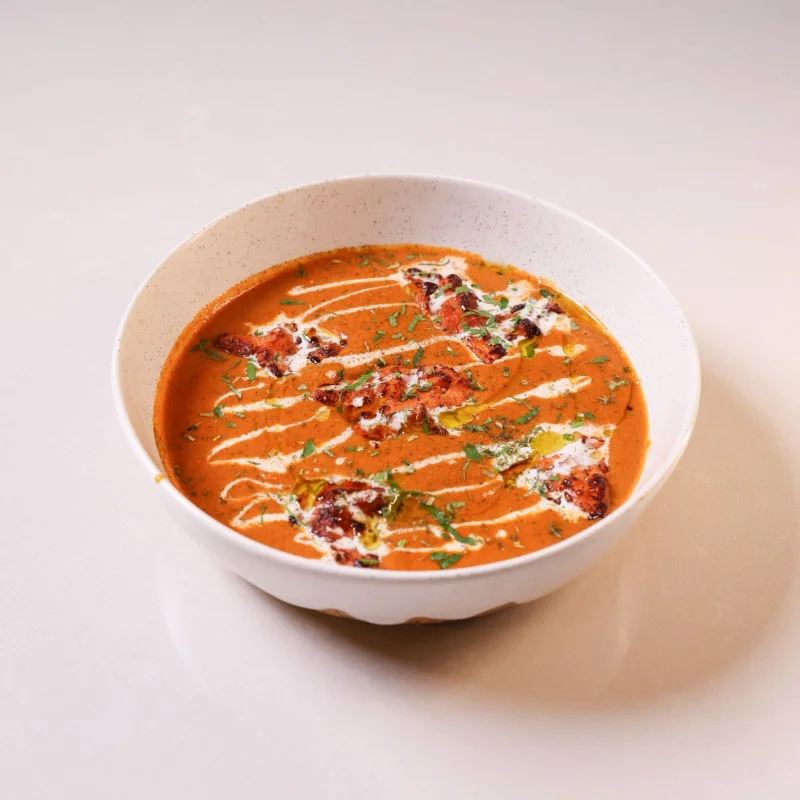 Rich creamy tomato curry with tender chicken with butter and cream
