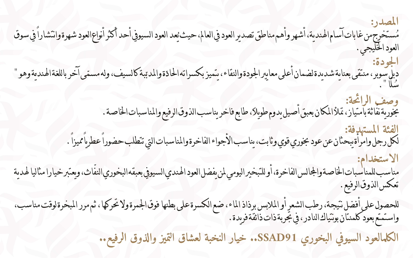 العود السيوفي البخوري SSAD91 .. خيار النخبة لعشاق التميز والذوق الرفيع.